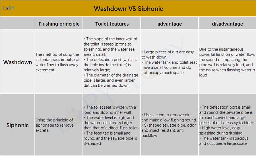 That’s all for introducing the relevant knowledge about the difference between Siphonic vs Washdown Toilet, hoping to be helpful to everyone. For more relevant knowledge, please visit our LORY official website.